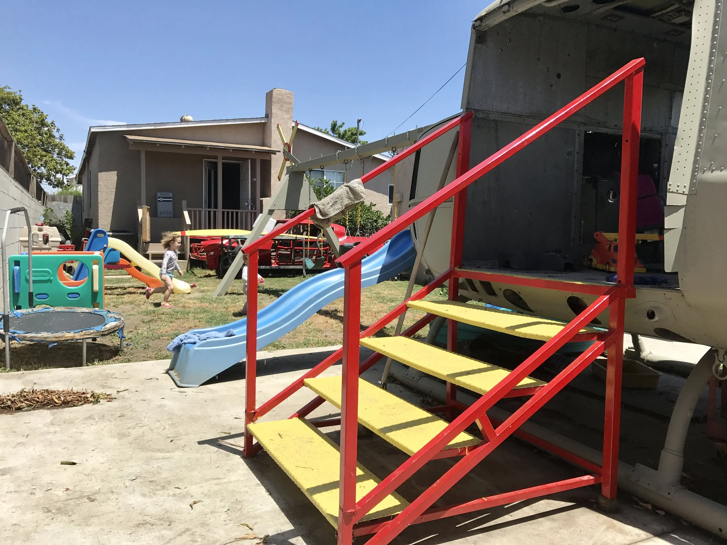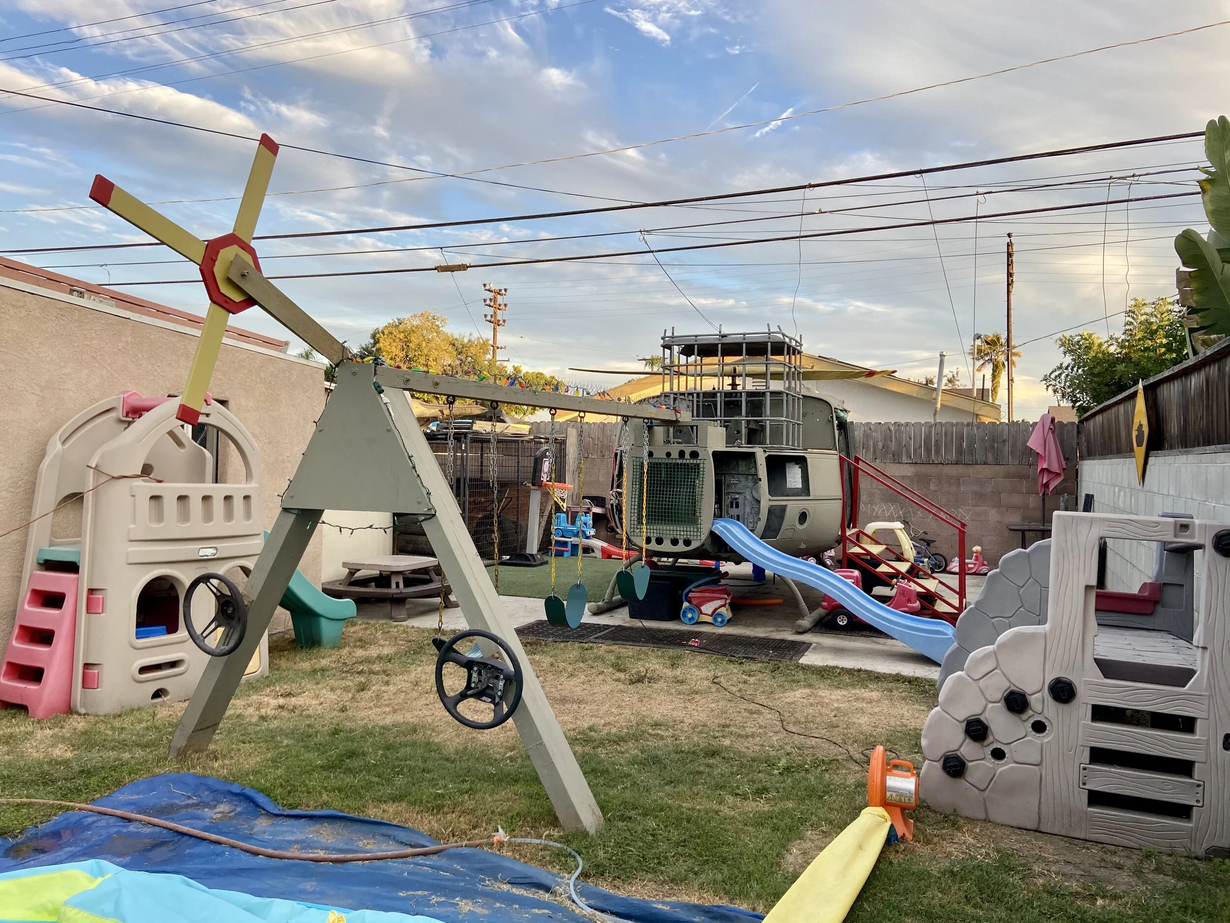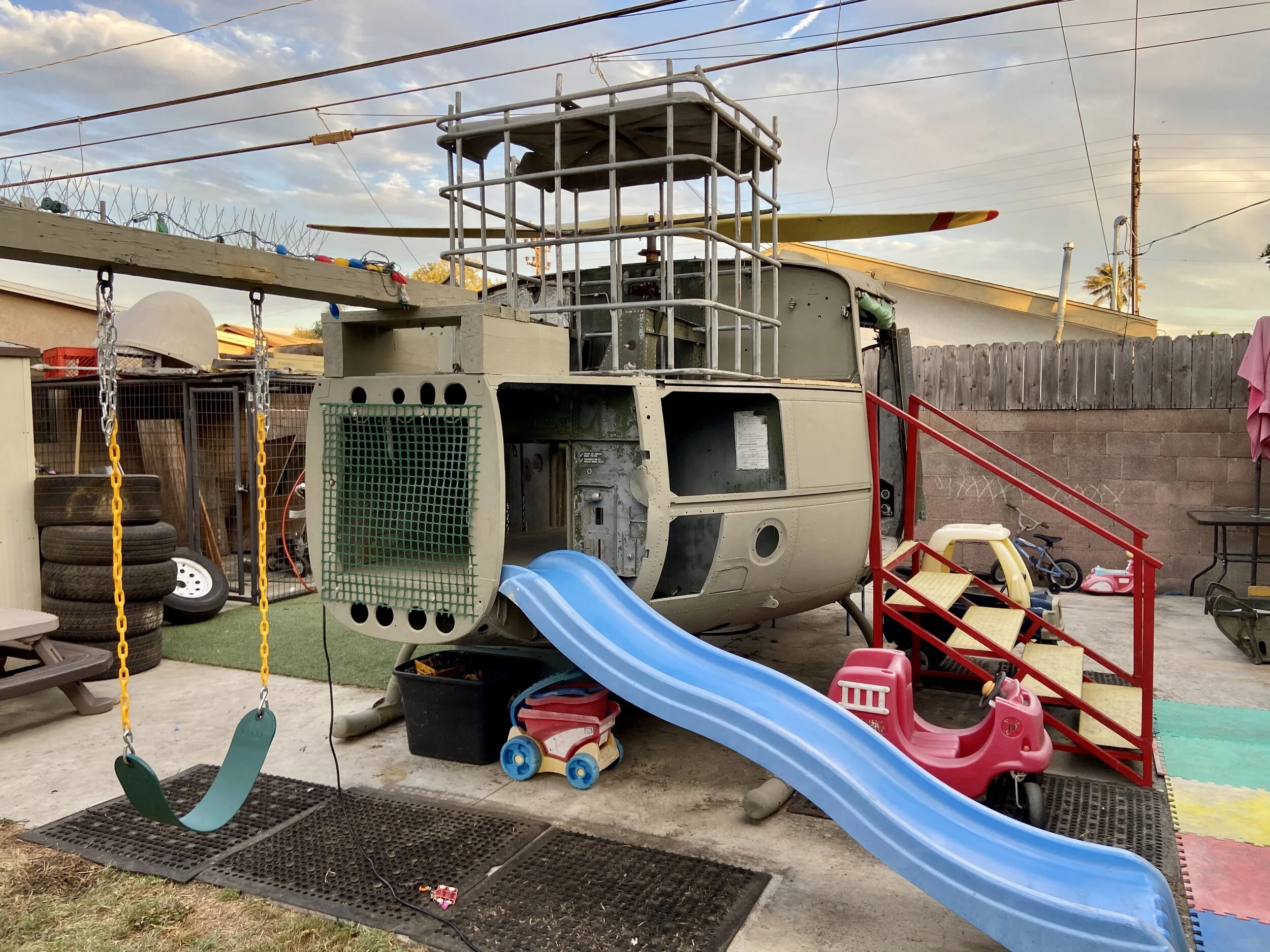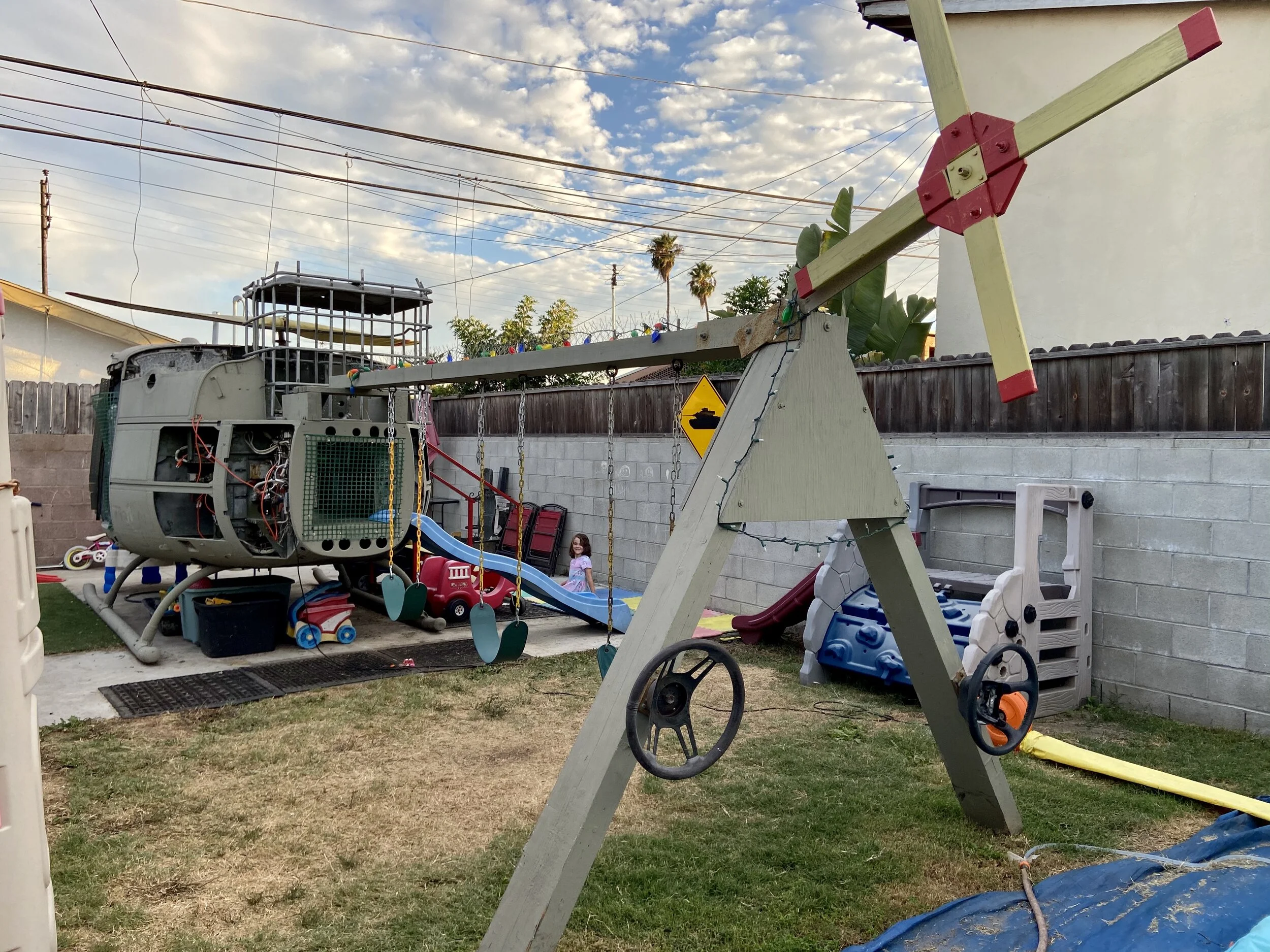 Suddenly, inspiration struck. We were expecting our first child, and naturally our minds were focused on kid related things. We asked if we could keep the shell, and turn it into a one of a kind playground. The helicopter arrived at our house one week after our infant daughter.