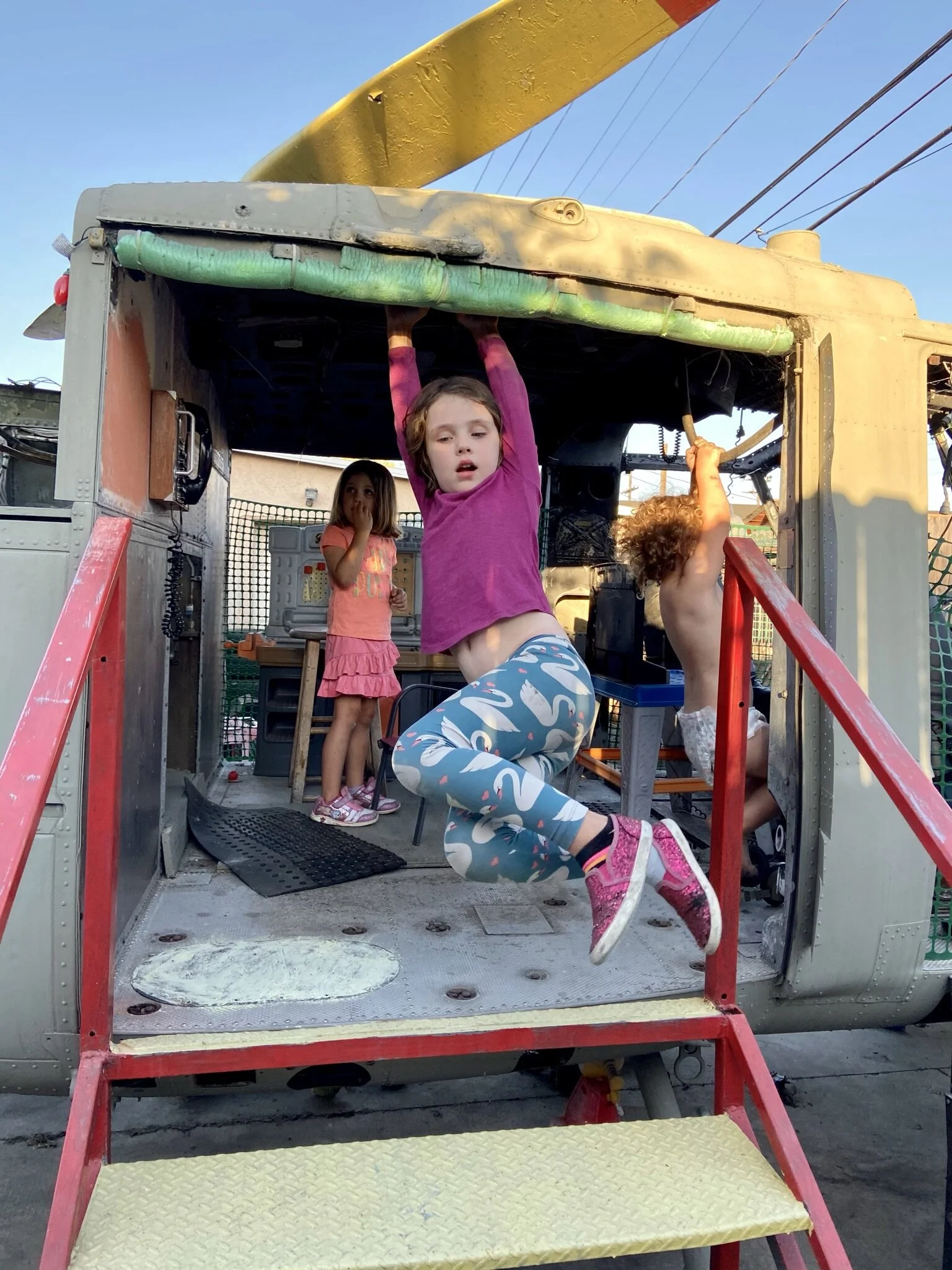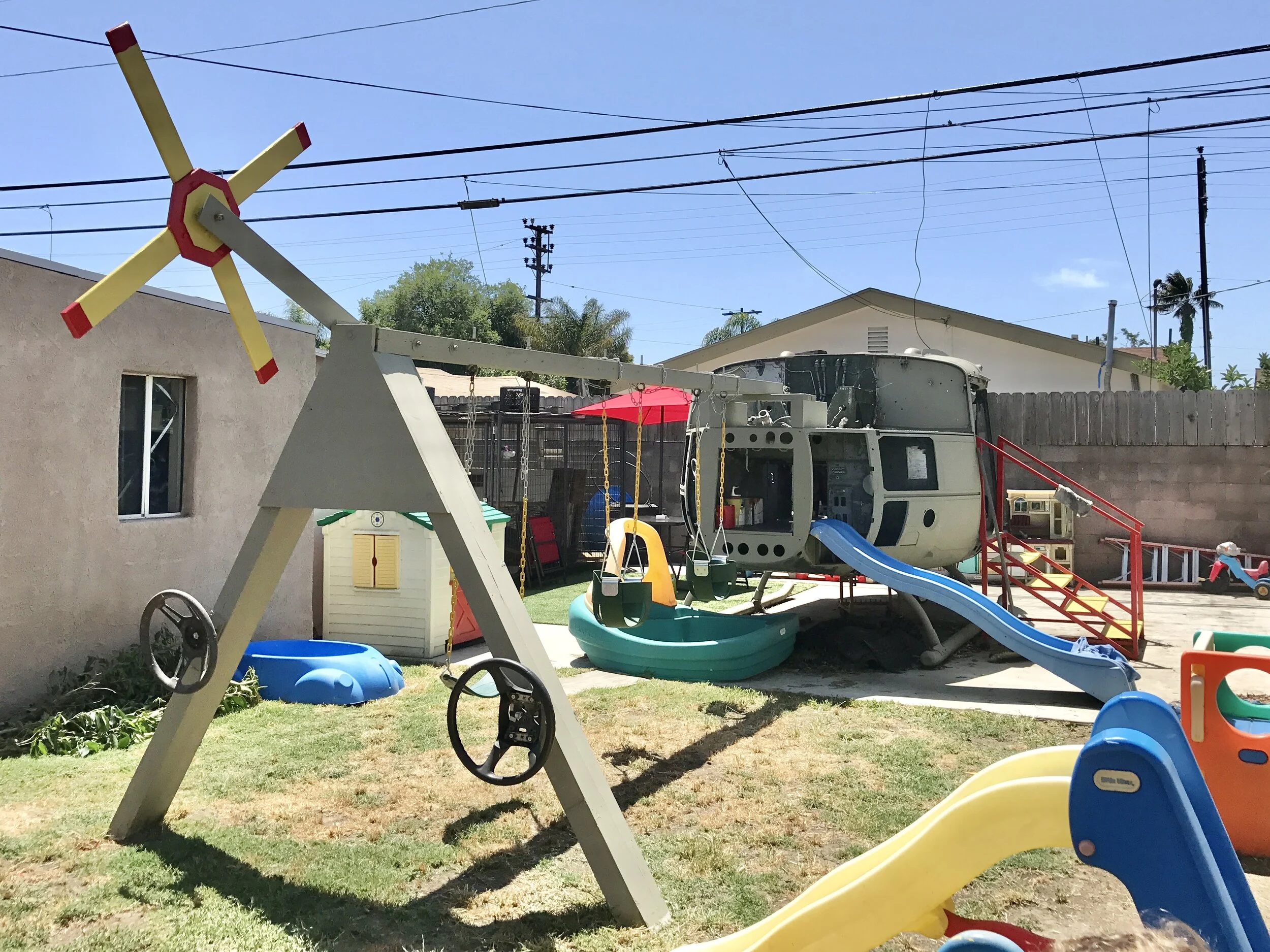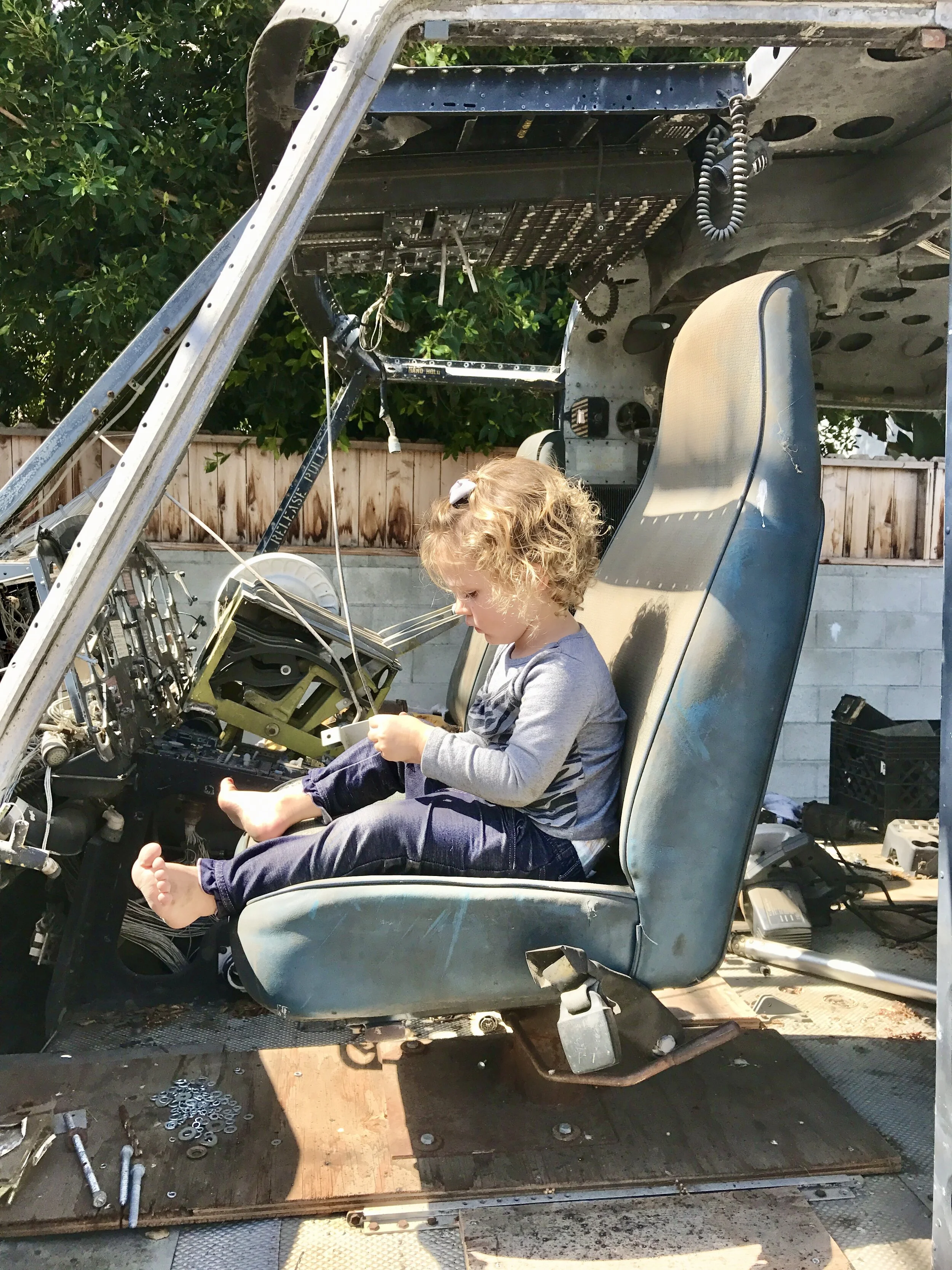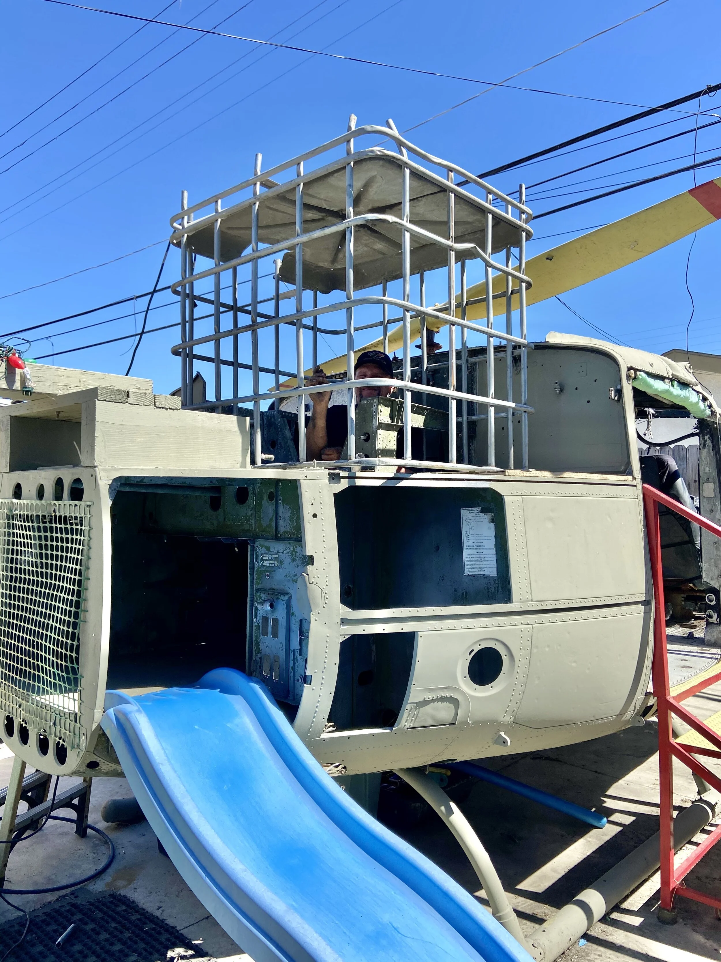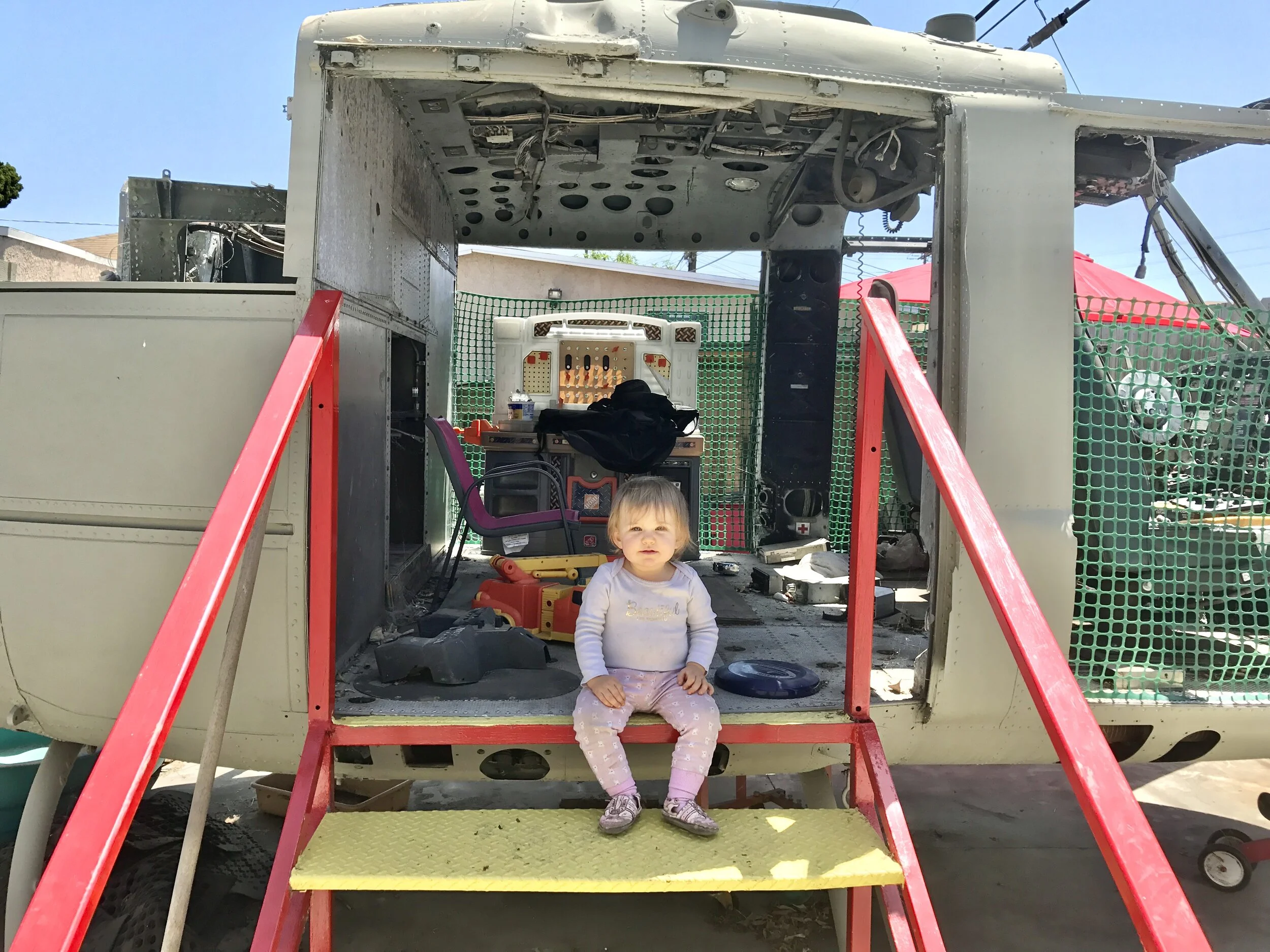 Suddenly, inspiration struck. We were expecting our first child, and naturally our minds were focused on kid related things. We asked if we could keep the shell, and turn it into a one of a kind playground. The helicopter arrived at our house one week after our infant daughter.