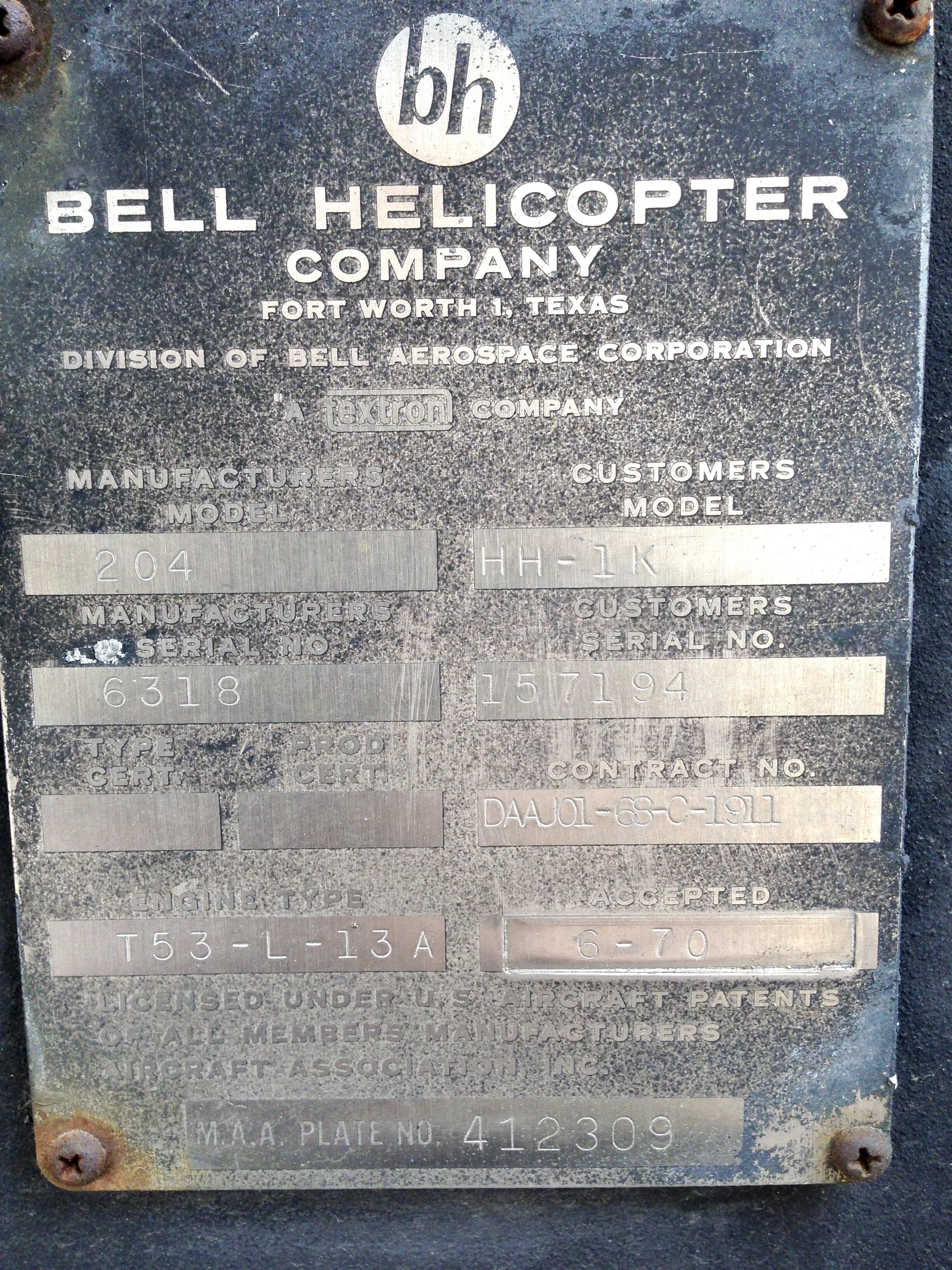 From the records we’ve found, it looks like our Huey did a cold winter exercise in Norway, and had an assignment at the Naval Air Weapons Station China Lake in Ridgecrest, CA. At some point, it was transferred to AMARG (Aerospace Maintenance and Regeneration Group, often called The Boneyard). That’s a US Air Force aircraft and maintenance facility in Tucson, AZ.